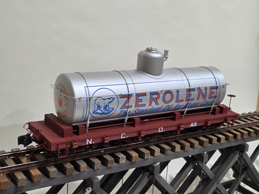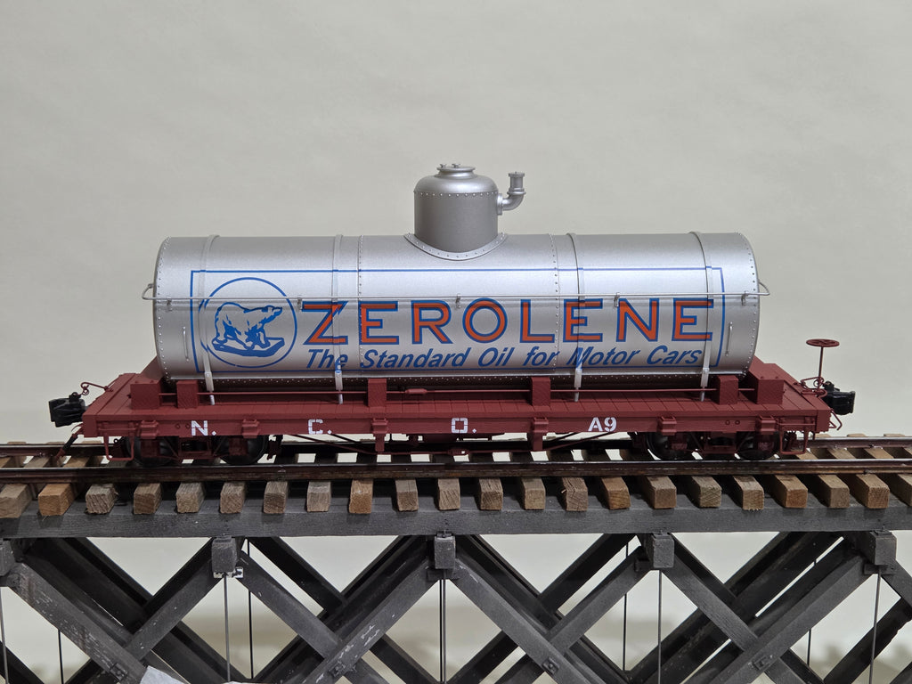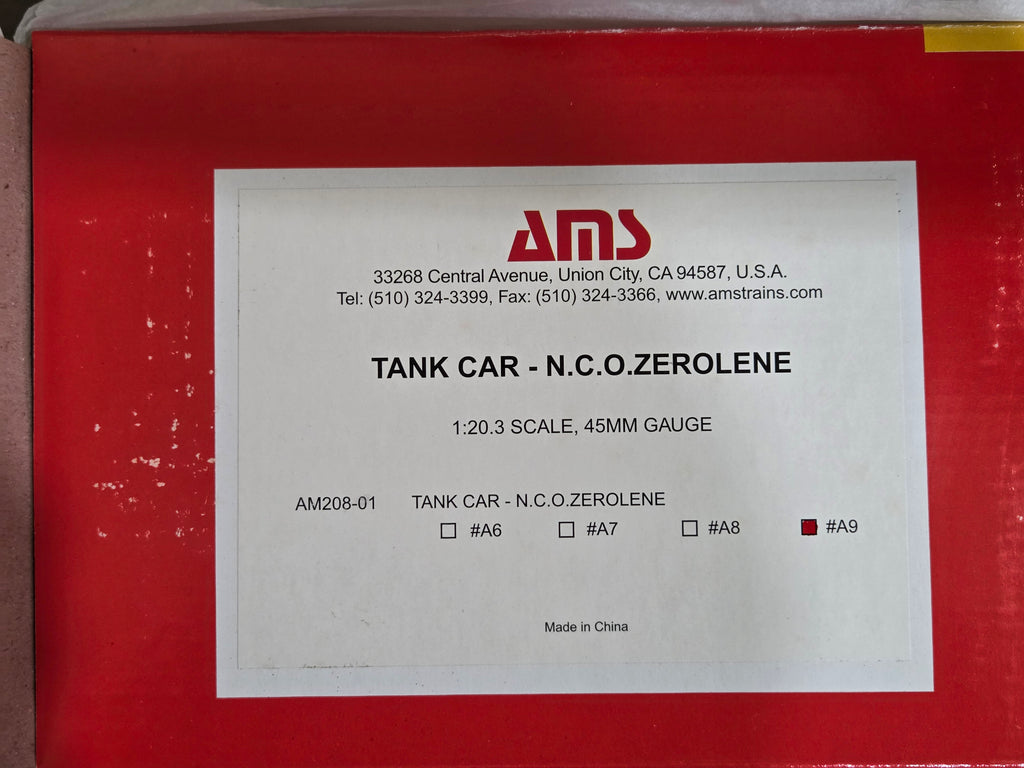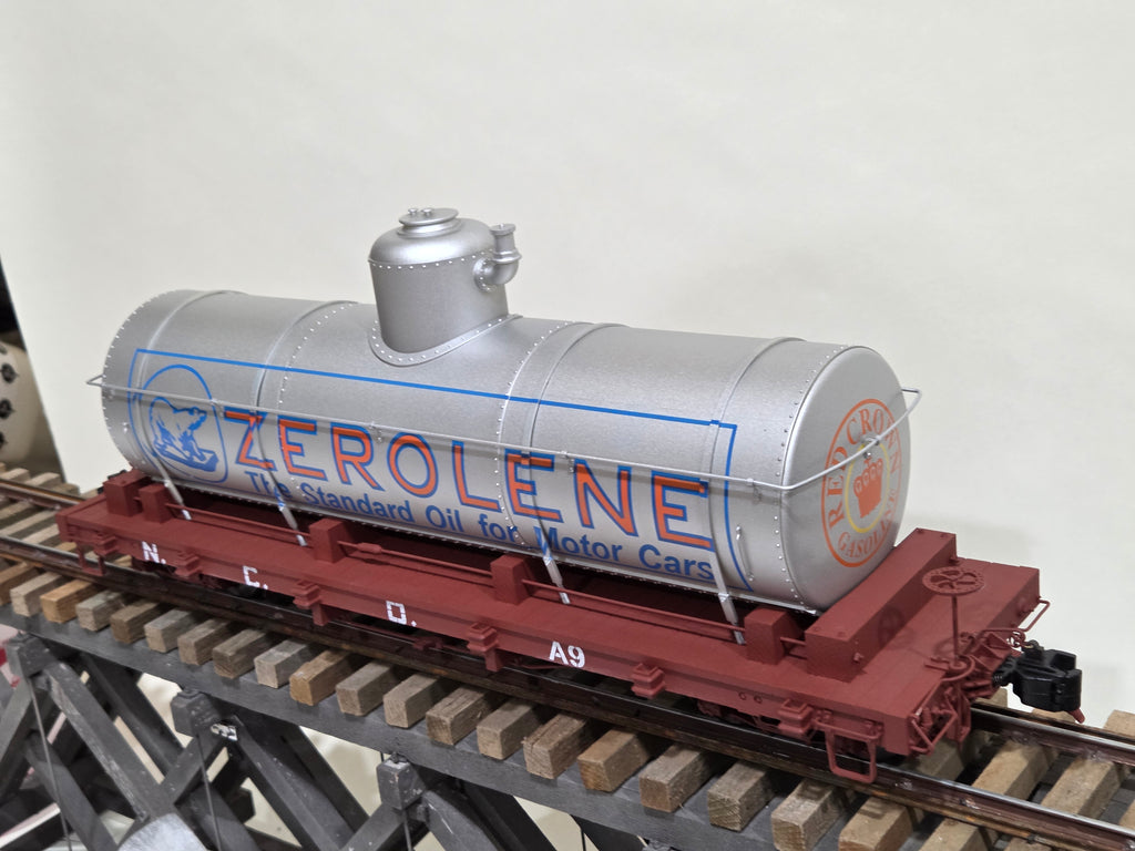 Accucraft NCNO Tank Car - Zerolene. Brand new case unopened.  Car opened to photograph.