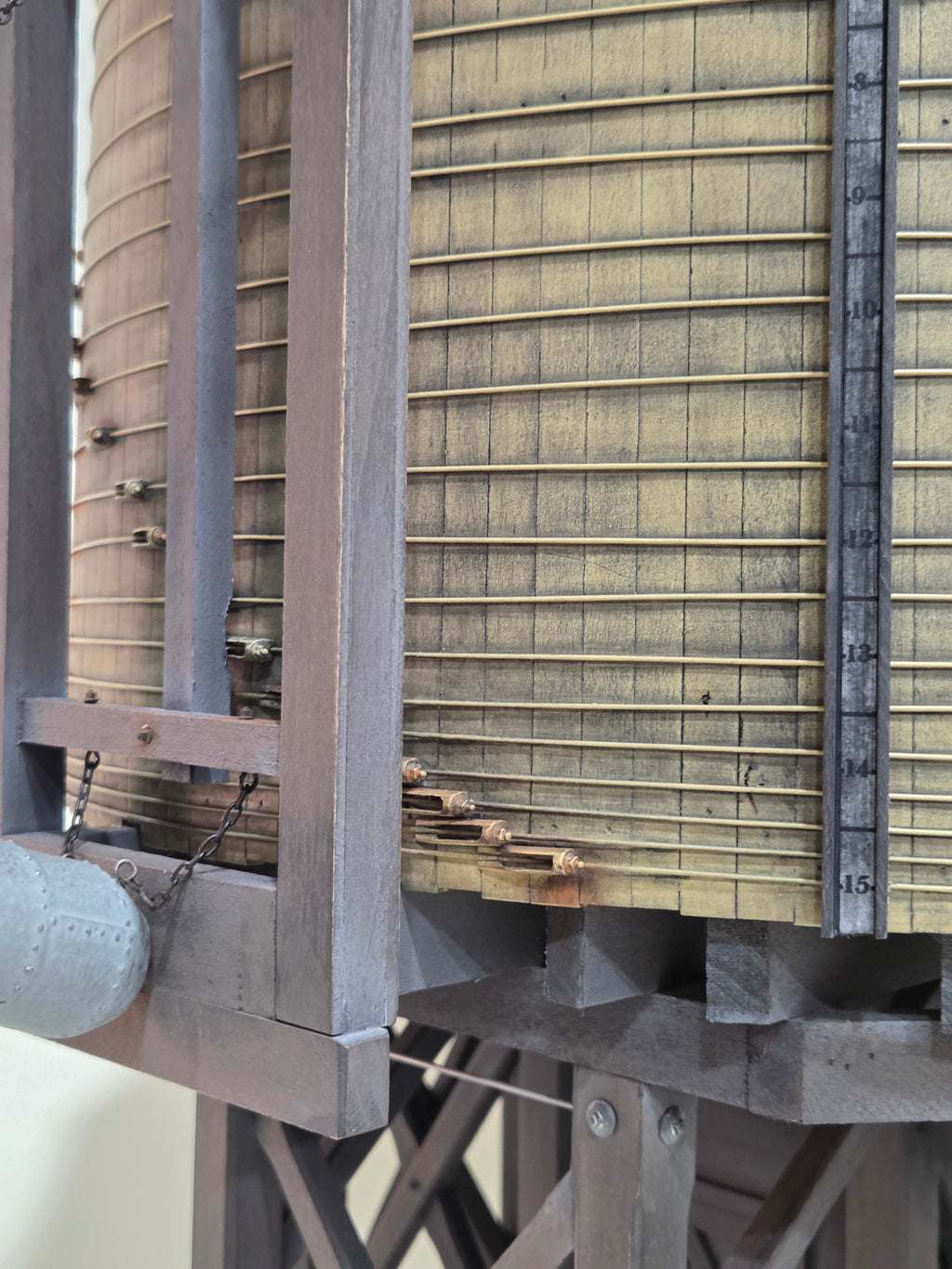 Beautiful model, wooden structure built by Joe Metzger. One of only a few octagonal roof versions. These come from Joe unfinished typically. This one is painted and weathered ready to go on the railroad. Would not recommend leaving outdoors, but it can be used outside.